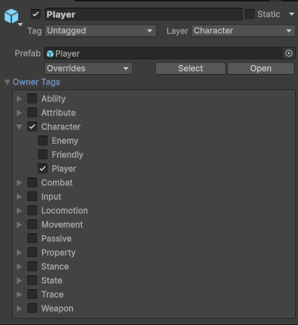 프로젝트 전반에서 캐릭터 상태, 스탠스, 행동, 입력, 무기 타입 등 다양한 “상태/속성”을 문자열이나 enum으로 하드코딩하지 않고, 계층 구조 태그(GameplayTag) 로 통합 관리할 수 있도록 태그 시스템을 구현했습니다.